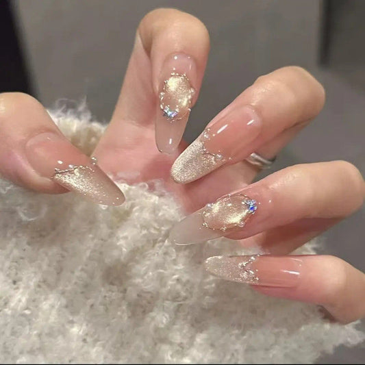 Long Stiletto Glitter Diamond Cat-Eye Nail...