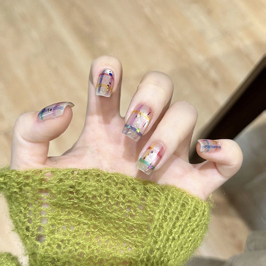Short Press-on Nails with Aurora Shimmer |...