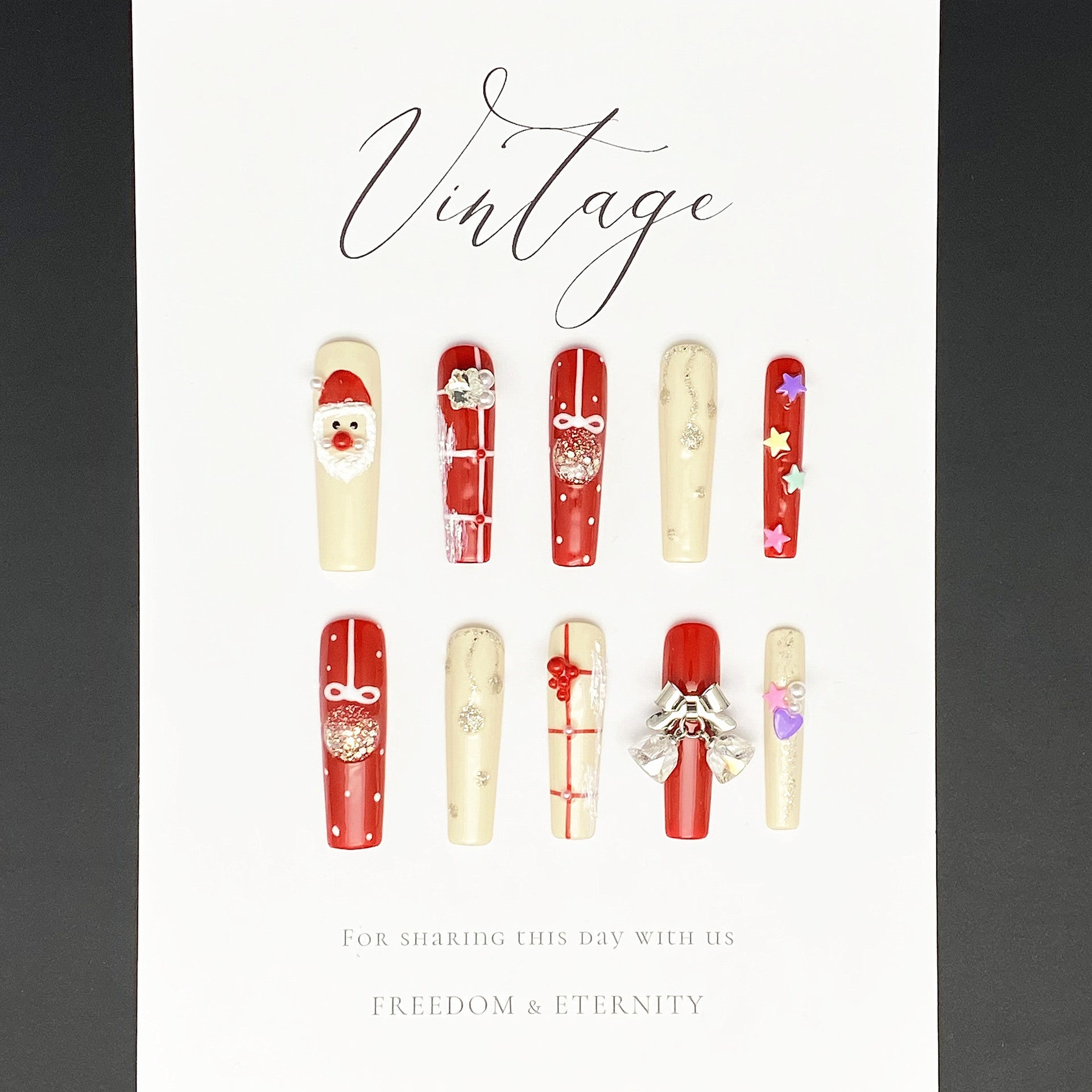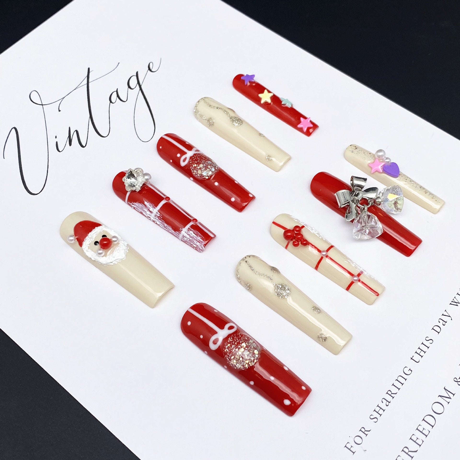 Christmas Press-on Nails with Bells Snowflakes, and Stars Design | Wearing Armor Nail | Gel Nail Strips