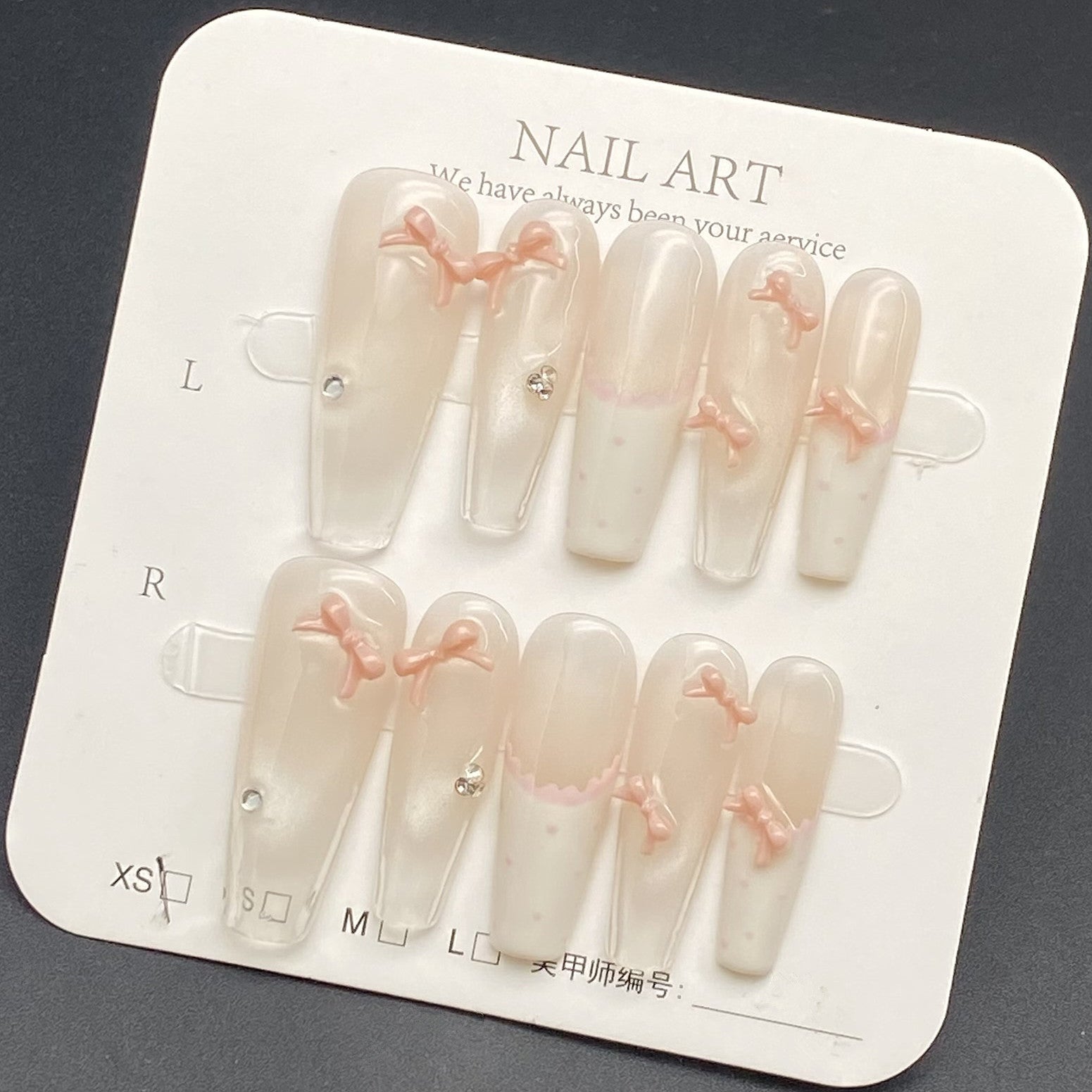 Ethereal Sheer Bow Press-on Nails in Elegant Long Almond Shape  | Wearing Armor Nail | Gel Nail Strips