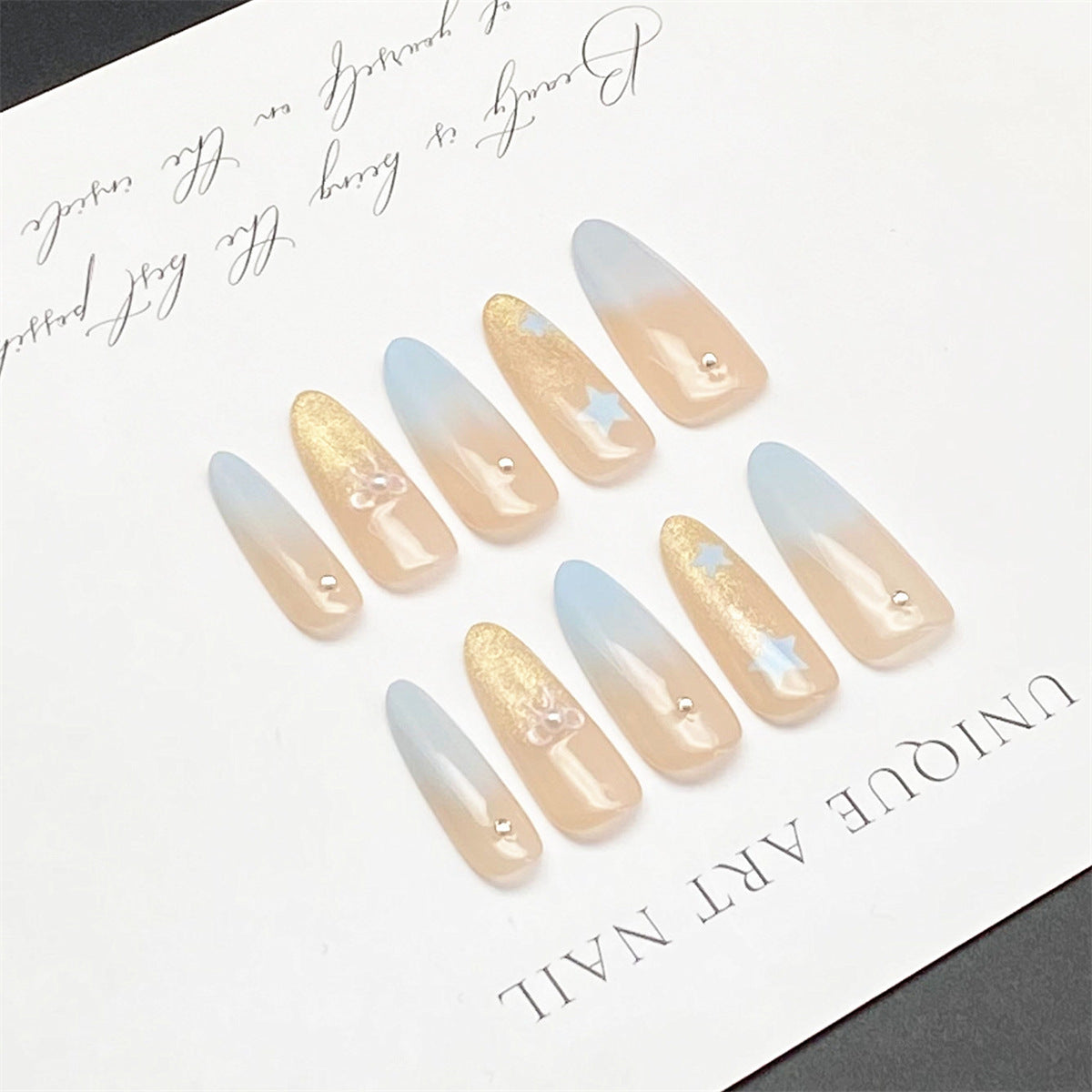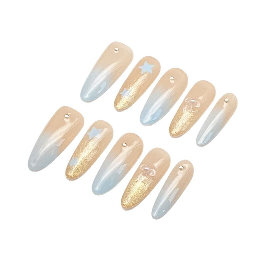 French Press-on Nails with Stars and Glitter | Wearing Armor Nail | Gel Nail Strips