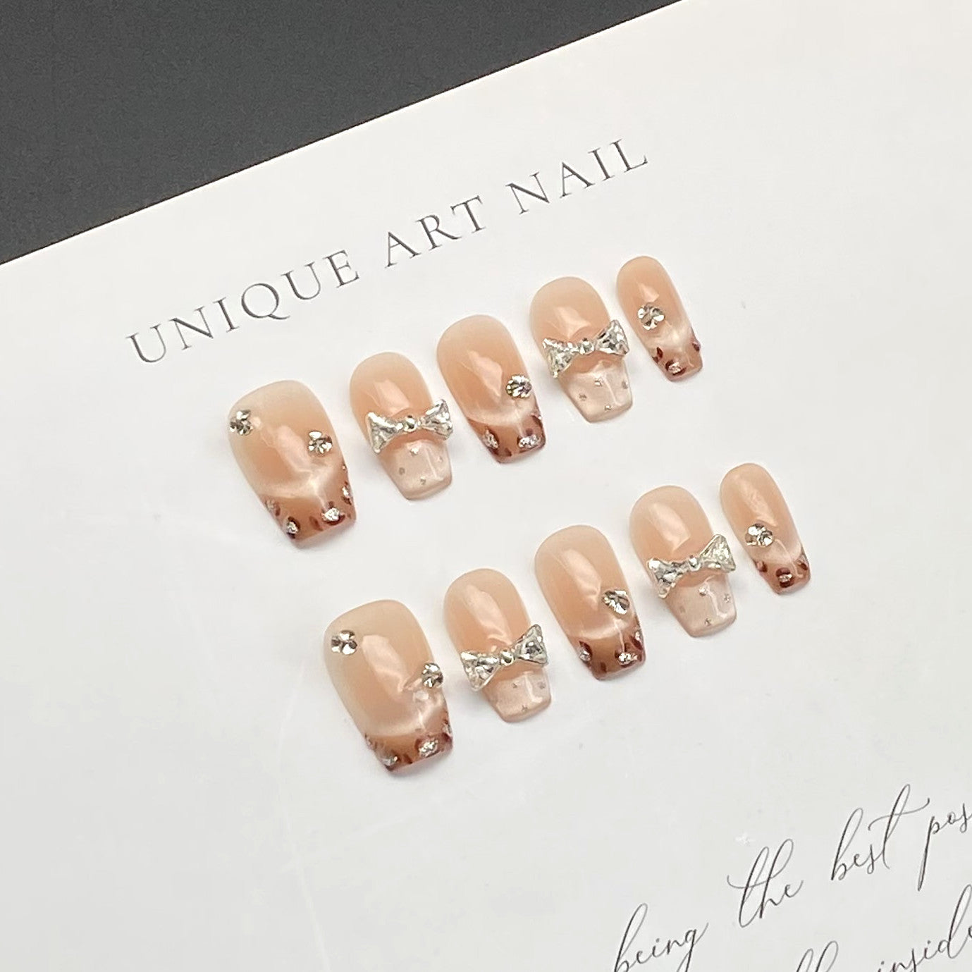French Cat Eye Dazzling Glitter Bows Wearing Armor Nail | Gel Nail Strips
