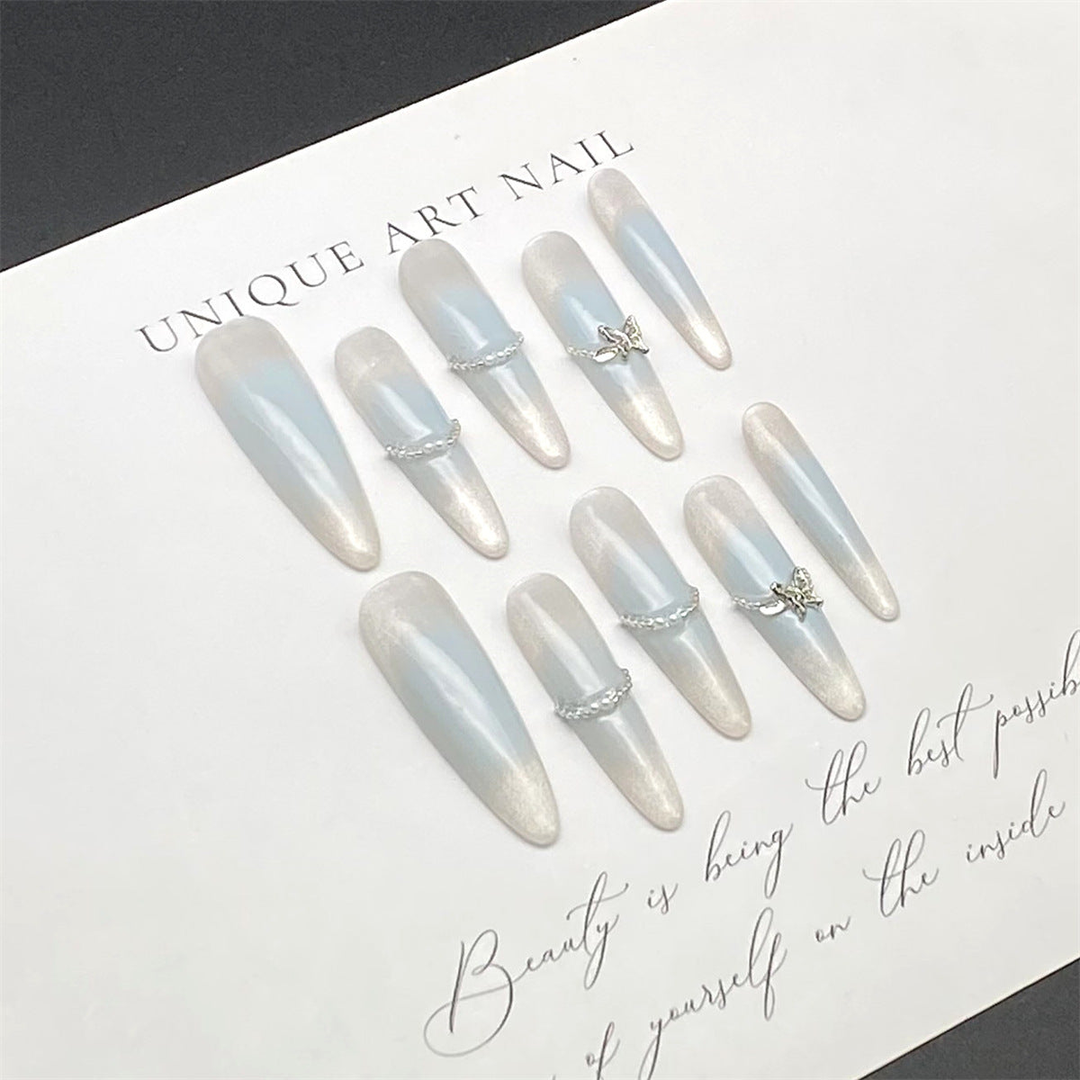New Stiletto Press-on Nails with Cat's Eye and Butterfly Design, Versatile, Fresh and Sophisticated Brightening Nail Stickers | Wearing Armor Nail | Gel Nail Strips